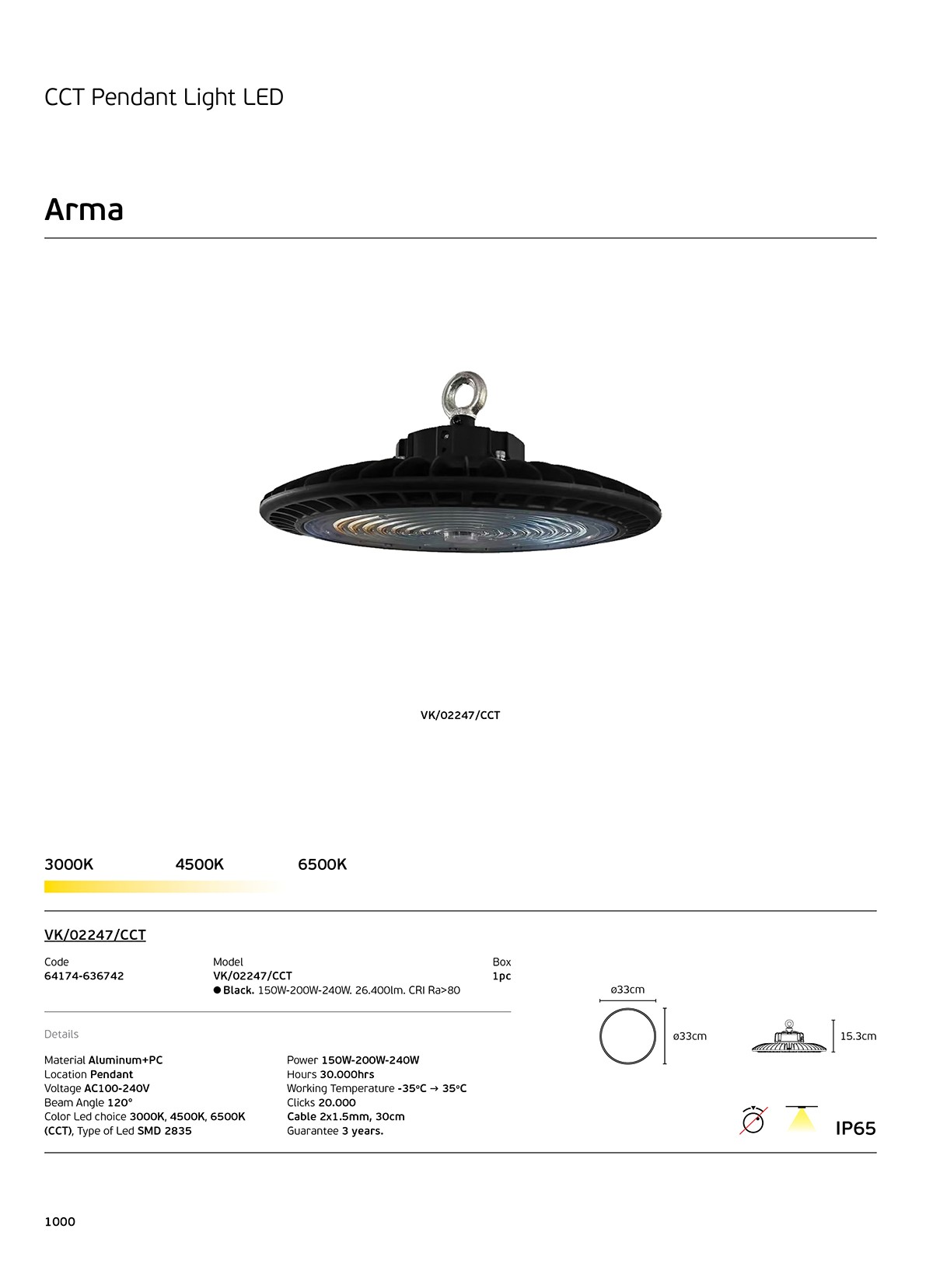 Arma Fb Pin Email Viber Arma VK/02247/CCT CCT κρεμαστό φωτιστικό LED, 100-240V, 3000K, 4500K ή 6500K, 150W-200W-240W, 26.400lm, 120°, CRI>80, IP65, ø33x15.3cm, μαύρο Kelvin 3000K, 4500K, 6500KPower 150W-200W-240WLumen 26.400lmVoltage AC100-240V Παρακαλώ όπως συνδεθείτε για να προσθέσετε το προϊόν στη λίστα παραγγελιών σας, ή / και να δείτε όλες τις πληροφορίες σχετικά με το προϊόν, τη διαθεσιμότητα και την τιμή χονδρικής. VK Leading Light Από το 1978 A: Αριστοτέλους 8, Ταύρος, 177 78 Αθήνα, Ελλάδα T: +30 210 99 69 610 - 11, +30 210 34 58 072 + 075 F: 210 99 58 374 E: info@vkleadinglight.gr, W: https://vkleadinglight.gr