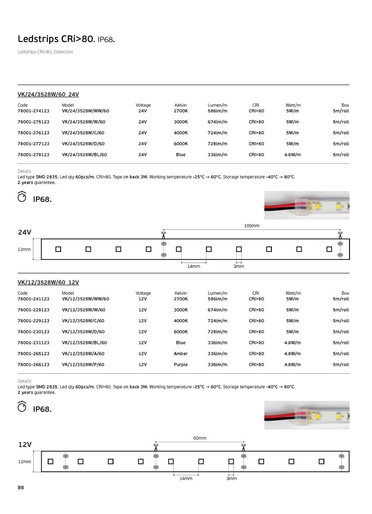 Ταινία Led SMD 2835, 12V, 4.8W/m, 336lm/m, PURPLE, 5m/roll, CRI>80, IP68