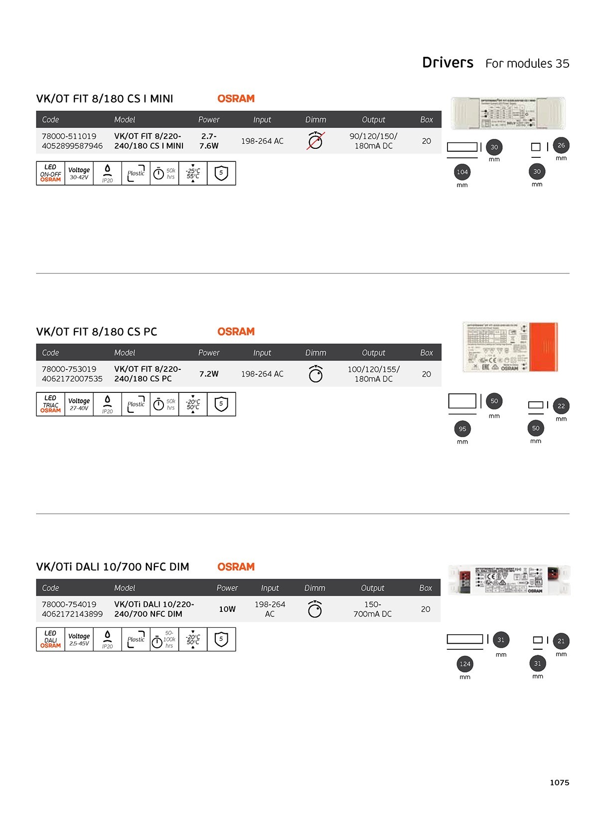 LED τροφοδοτικό OSRAM για modules D35, 7.2W, AC198-264, DC100/120/155/180mA, dimmable