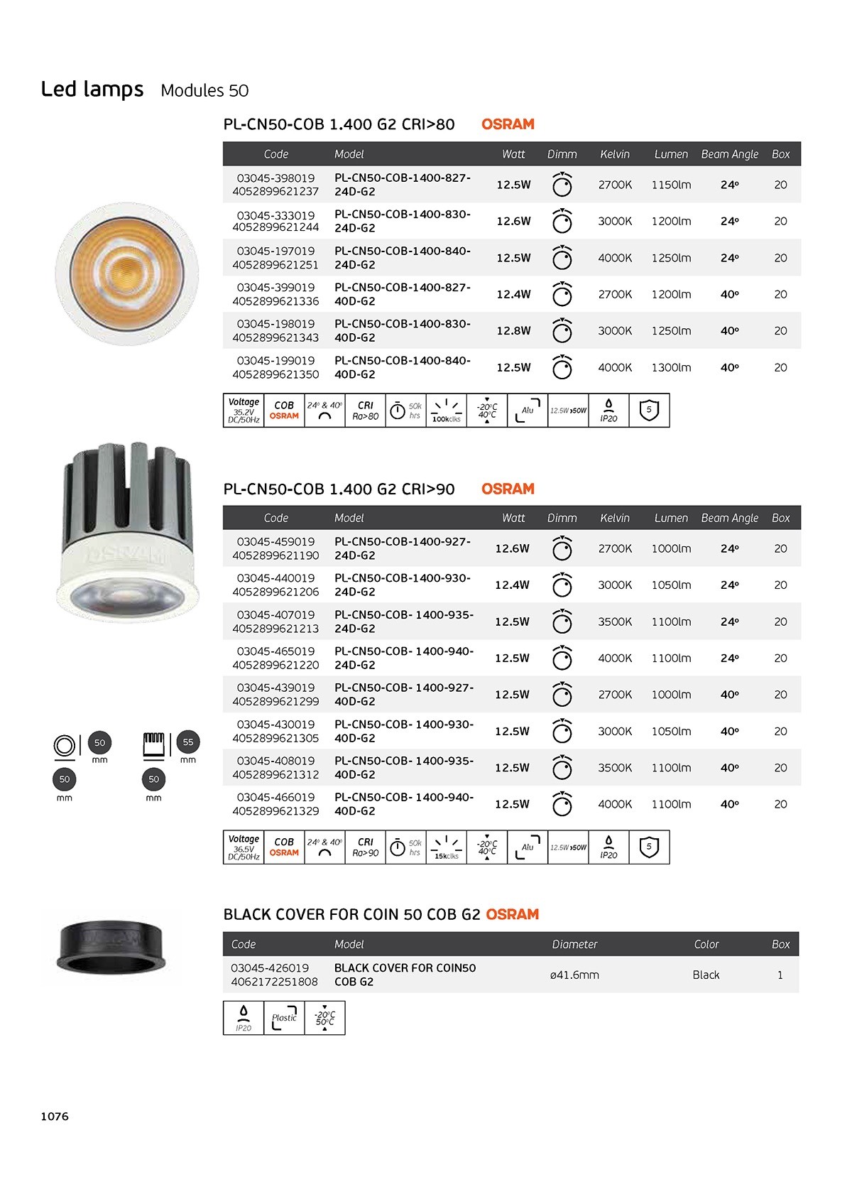 Module Led 50 OSRAM, 12.5W, 2700K, 1.150lm, 24°, CRI>80, dimmable