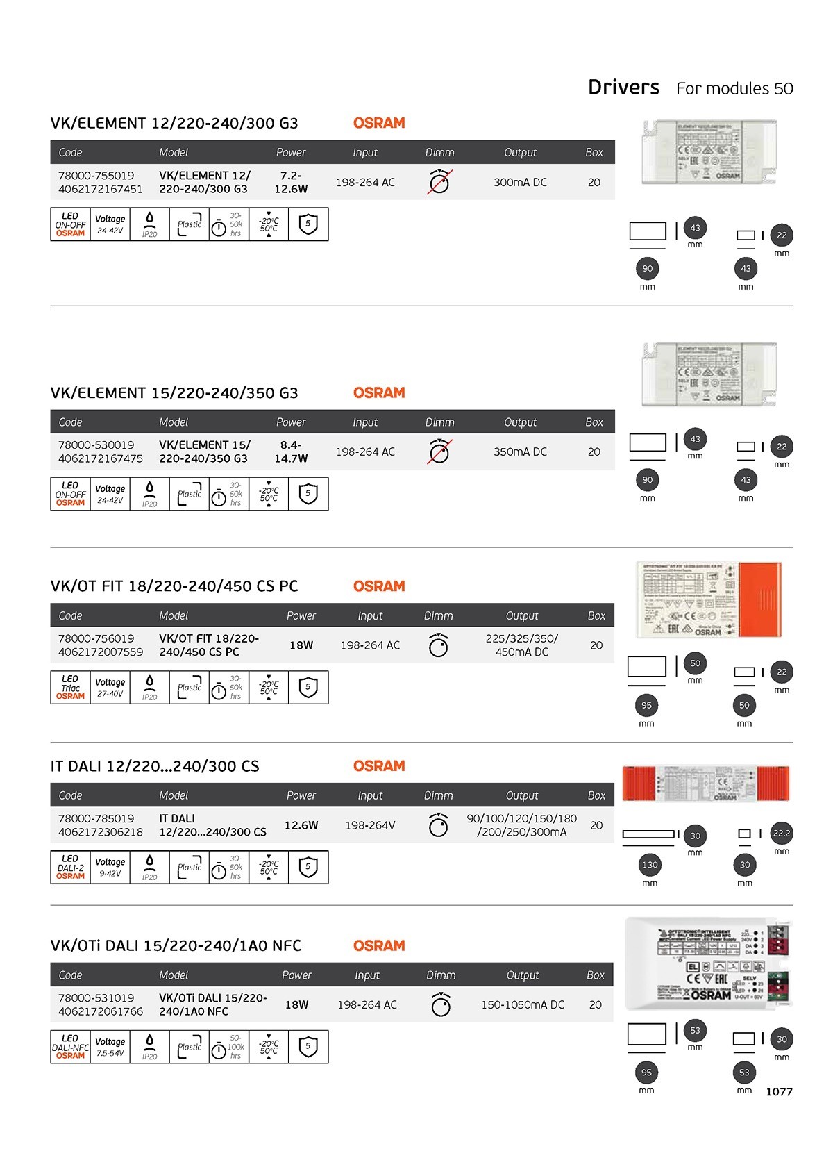 LED τροφοδοτικό OSRAM για modules D50, 8.4-14.7W, AC198-264V, DC350mA