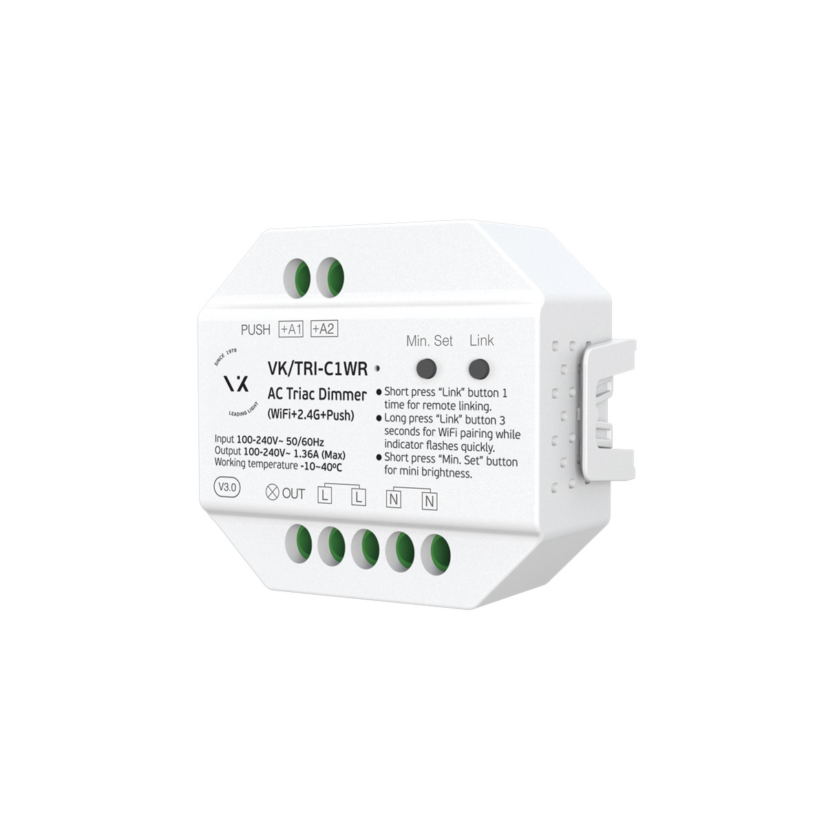 Δέκτης AC Triac Dimmer Wi-fi + 2.4G + Push Max 1.36A. 100-240V. IP20