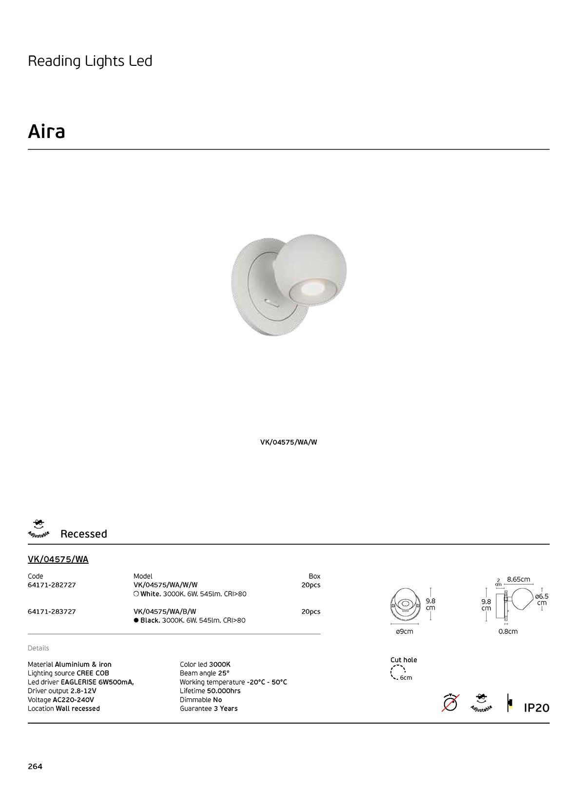 Aira Fb Pin Email Viber Aira VK/04575/WA/W/W Reading Light Led. 3000K. 6W. 545lm. CRI>80. IP20, White Kelvin 3000ΚPower 6WLumen 545lmVoltage 220-240V Please login to add to Order List, and / or to view all product information, availability, and pricing. VK Leading Light Since 1978 A: 8 Aristotelous str., Tavros, 177 78 Athens, Greece T: +30 210 99 69 610 - 11, +30 210 34 58 072 + 075 F: 210 99 58 374 E: info@vkleadinglight.gr, W: https://vkleadinglight.gr