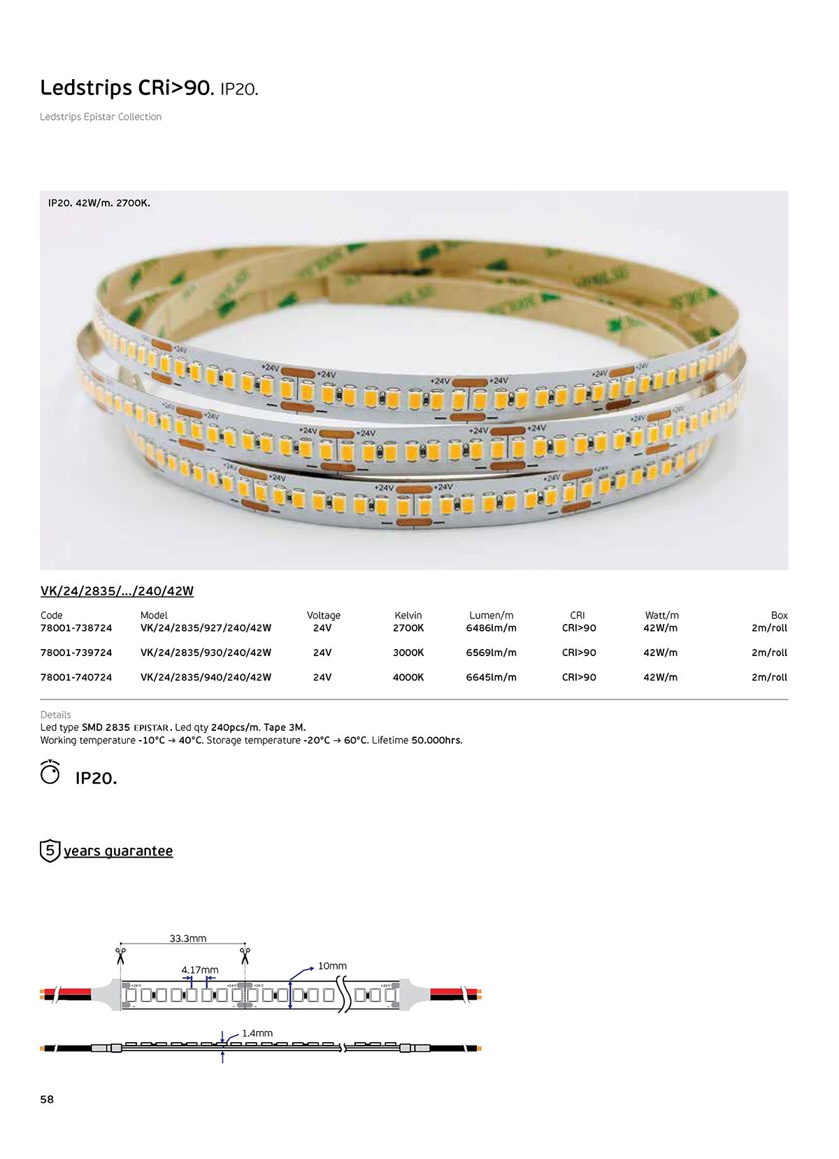 CRi90 Fb Pin Email Viber CRi90 VK/24/2835/940/240/42W Ledstrips 24V, 42W/m, 6.645lm/m, 4000K, 2m/roll, CRI>90, IP20 Kelvin 4000KPower 42W/mLumen 6.645lm/mVoltage 24V Please login to add to Order List, and / or to view all product information, availability, and pricing. VK Leading Light Since 1978 A: 8 Aristotelous str., Tavros, 177 78 Athens, Greece T: +30 210 99 69 610 - 11, +30 210 34 58 072 + 075 F: 210 99 58 374 E: info@vkleadinglight.gr, W: https://vkleadinglight.gr