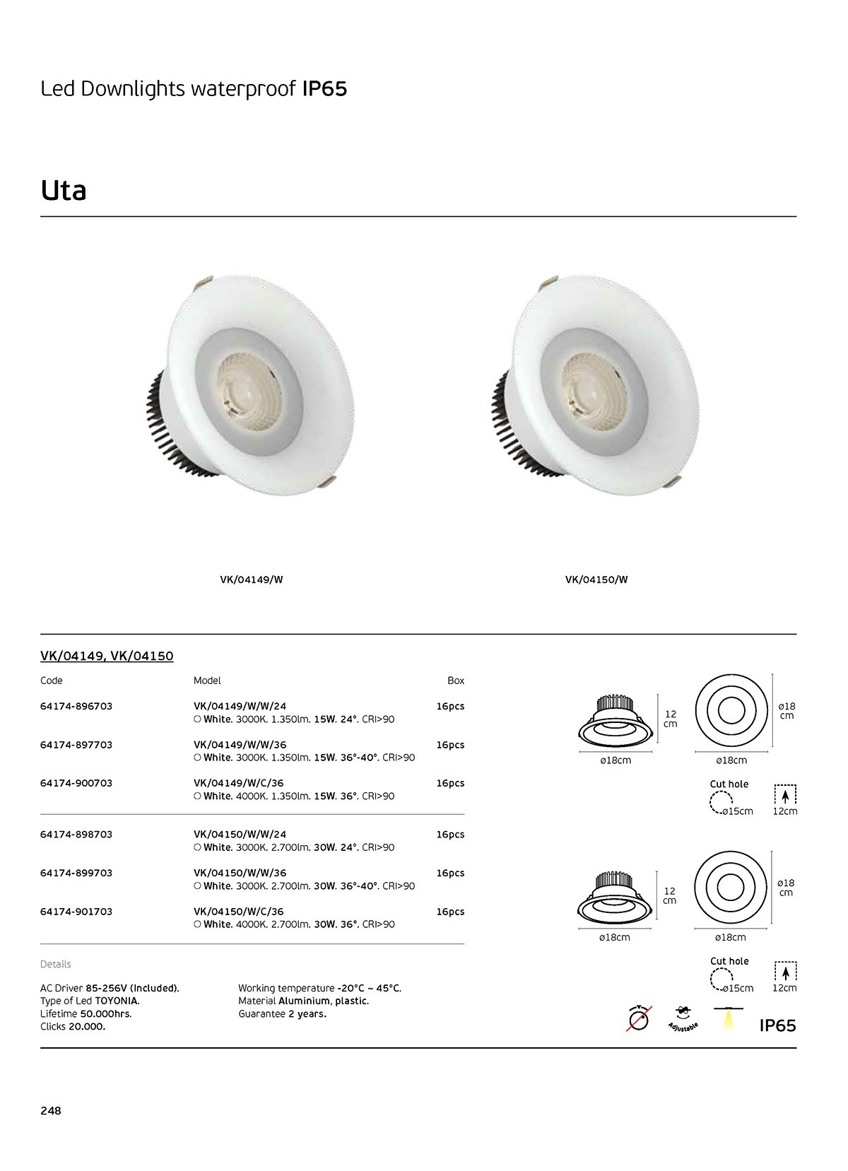 Uta Fb Pin Email Viber Uta VK/04150/W/W/36 Recessed adjustable spot led, 30W, 3000K, 2.700lm, 36°-40°, IP65, ø18x12cm, white Kelvin 3000KPower 30WLumen 2.700lmVoltage 85-265V Please login to add to Order List, and / or to view all product information, availability, and pricing. VK Leading Light Since 1978 A: 8 Aristotelous str., Tavros, 177 78 Athens, Greece T: +30 210 99 69 610 - 11, +30 210 34 58 072 + 075 F: 210 99 58 374 E: info@vkleadinglight.gr, W: https://vkleadinglight.gr