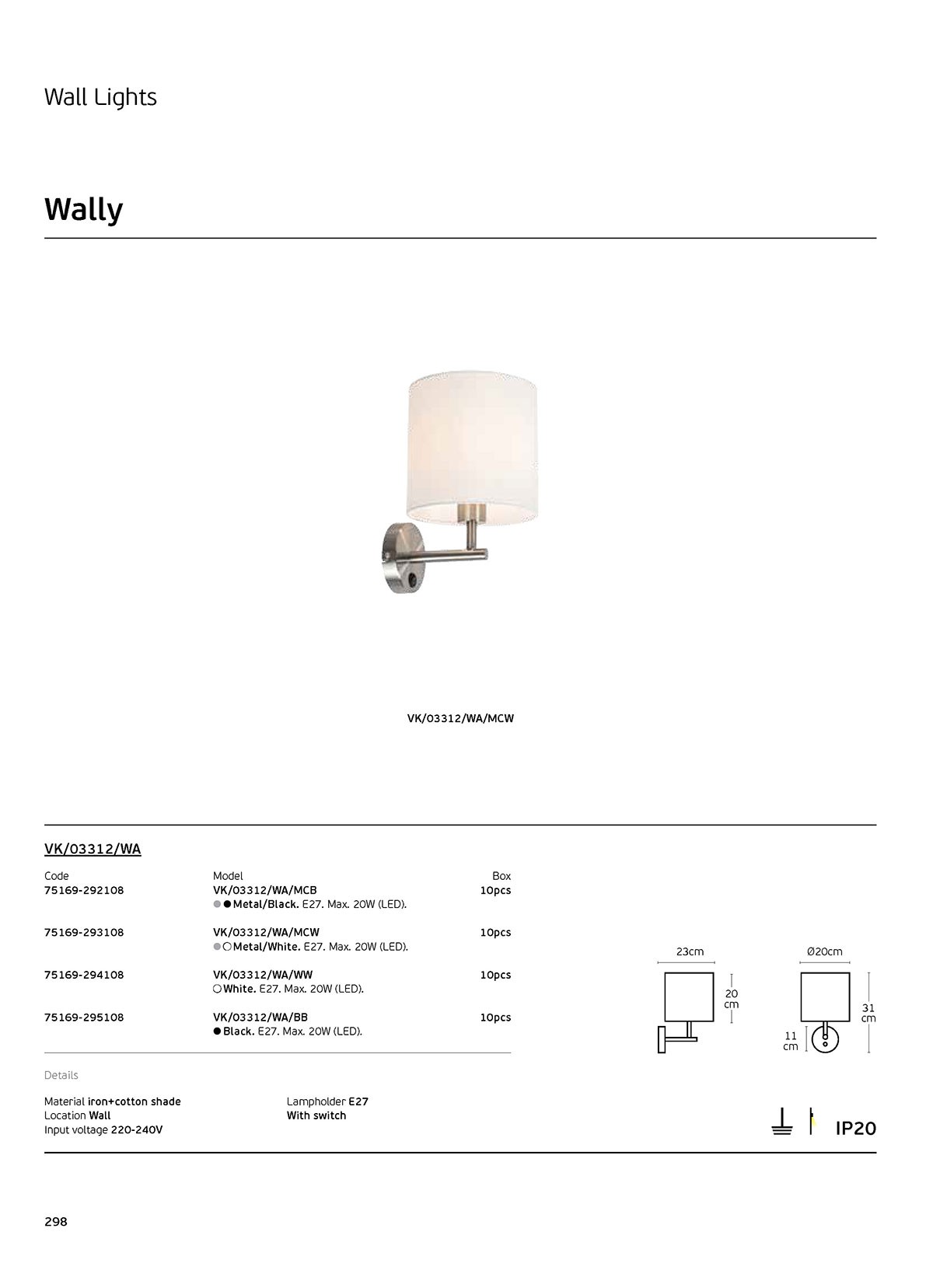Wally Fb Pin Email Viber Wally VK/03312/WA/BB Wall light. E27. Max. 20W (LED). IP20, Black Power Max 20W (LED)Voltage 220-240VExtra With switchLampholder Ε27 Please login to add to Order List, and / or to view all product information, availability, and pricing. VK Leading Light Since 1978 A: 8 Aristotelous str., Tavros, 177 78 Athens, Greece T: +30 210 99 69 610 - 11, +30 210 34 58 072 + 075 F: 210 99 58 374 E: info@vkleadinglight.gr, W: https://vkleadinglight.gr