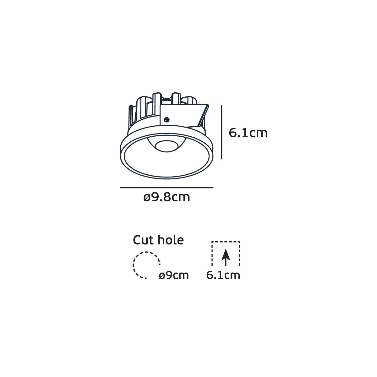 Χωνευτό φωτιστικό οροφής led, 17W, 3000K, 905lm, 20°, CRI>90, IP44, ø9.8x6.1cm, μαύρο