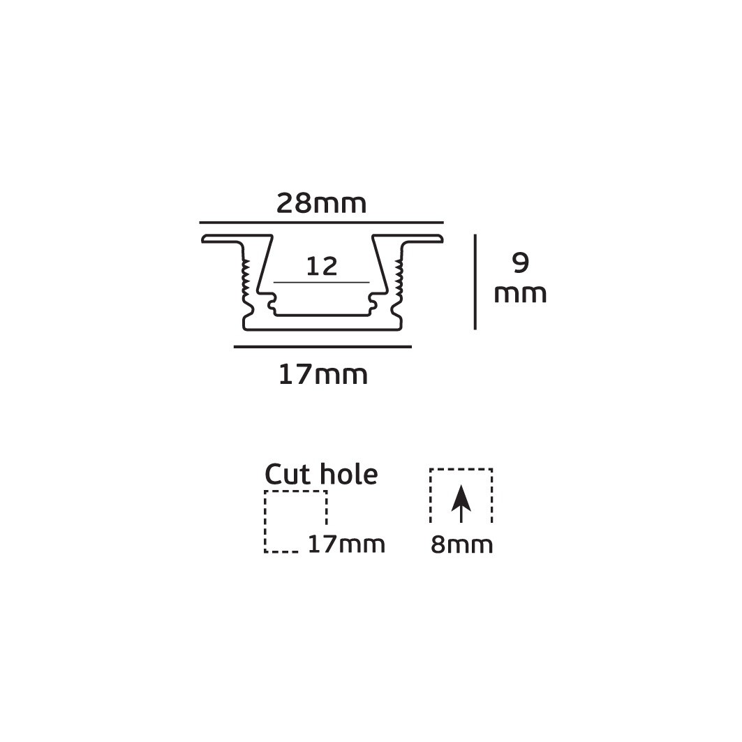 Προφίλ αλουμινίου για LED ταινίες, IP20. Λευκό. 2000x28x9mm