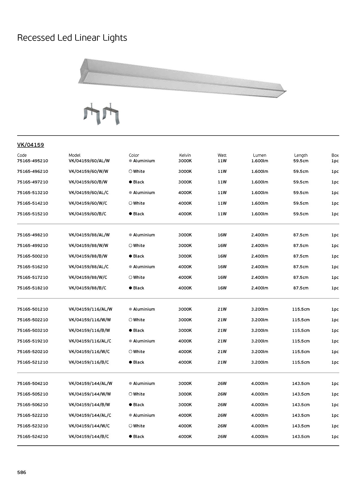 VK/04159 Fb Pin Email Viber VK/04159/144/B/C LED Γραμμικό φωτιστικό, χωνευτό, 26W, 4.000lm, 143.5cm, 4000K, 220-240V, IP20, μαύρο Kelvin 4000KPower 26WLumen 4.000lmVoltage 220-240V Παρακαλώ όπως συνδεθείτε για να προσθέσετε το προϊόν στη λίστα παραγγελιών σας, ή / και να δείτε όλες τις πληροφορίες σχετικά με το προϊόν, τη διαθεσιμότητα και την τιμή χονδρικής. VK Leading Light Από το 1978 A: Αριστοτέλους 8, Ταύρος, 177 78 Αθήνα, Ελλάδα T: +30 210 99 69 610 - 11, +30 210 34 58 072 + 075 F: 210 99 58 374 E: info@vkleadinglight.gr, W: https://vkleadinglight.gr