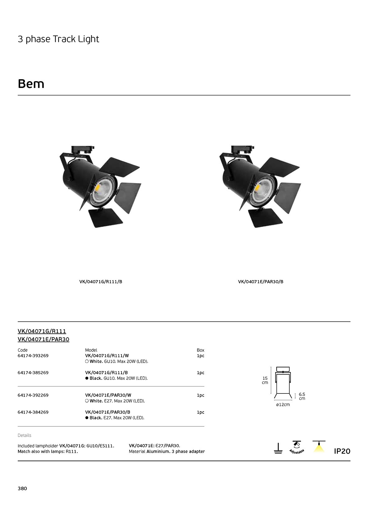 3-phase φωτιστικό ράγας με πτερύγια, E27/PAR30, max 20W (LED), L15cm, IP20, μαύρο