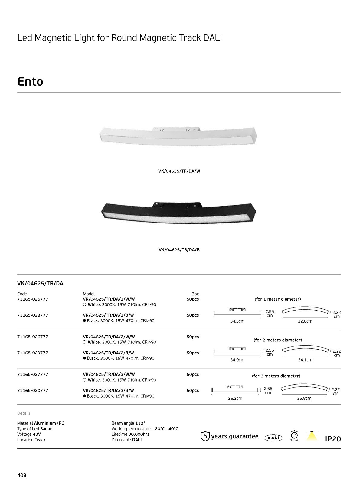 ENTO, Led φωτιστικό για μαγνητική στρογγυλή ράγα DALI, 48V. 3000K. 15W. 710lm. CRI>90, για διάμετρο 1μ., λευκό