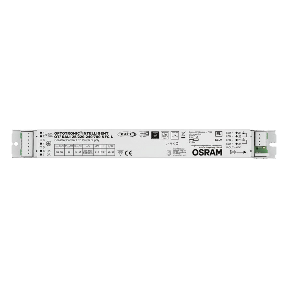 LED τροφοδοτικό OSRAM για modules D111, 2-28W, AC198-264V, DC180-700mA, dimmable