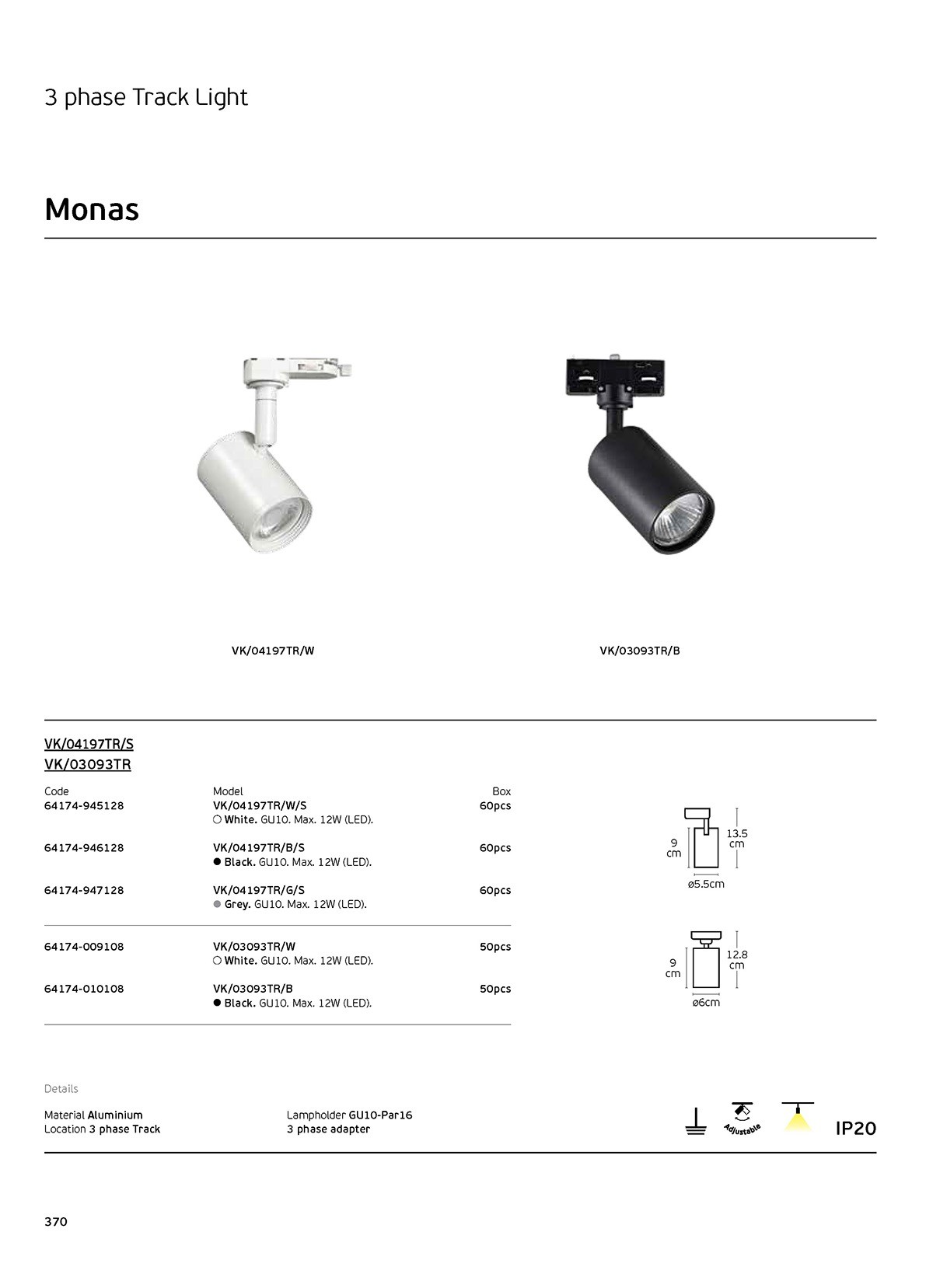 3-phase φωτιστικό ράγας, GU10/PAR16, max 12W (LED), L9cm, IP20, μαύρο