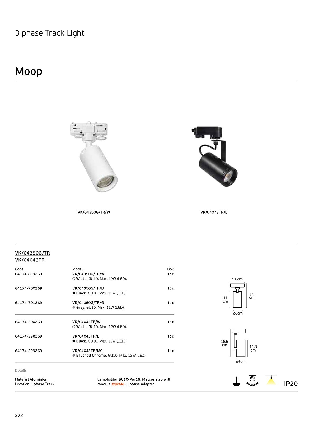 3-phase φωτιστικό ράγας, GU10/PAR16, max 12W (LED), L11cm, IP20, γκρι