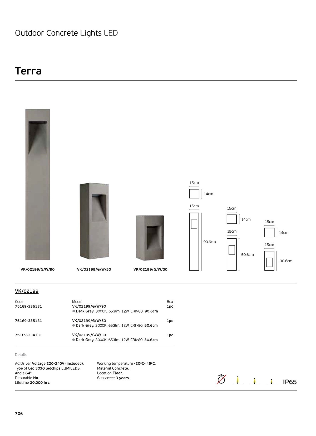 TERRA Φωτιστικό δαπέδου LED εξωτερικού χώρου, 220-240V, Σκούρο γκρι. 3000K. 653lm. 12W. CRI>80. L50.6cm. IP65